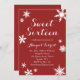 Uma aspersão de flocos de neve decora este divertido convite de festas dos Dezesseis, sobre um fundo vermelho de morango. Se forem necessários itens de coordenação adicionais para o seu evento, entre em contato conosco em prettyfancyinvites@gmail.com com sua solicitação.