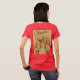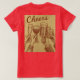 This t-shirt features a celebration image with the word Cheers in red script in the upper left and four hands raising drinks in a toast. The image, text and lines are red. The background is a metallic gold color. The t-shirt is a Basic Women's Short Sleeve t-shirt. The image is on the front and back of the t-shirt.