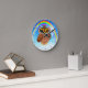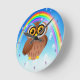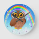 Relógio colorido com números para crianças com um bonito arco-íris e bolhas, e uma coruja fofa. Crianças vão adorar este personagem animal adorável!