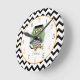 Um relógio com uma ilustração de um monstro verde inspirou uma coruja. O fundo é o chevon preto e branco. Personalize com seu nome. Procure itens correspondentes na Paperie de Jill.