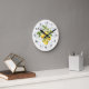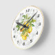 Bonito relógio brilhante da parede da cozinha com limões e um fundo de desenhos de fruta de cinza leve. Nova design.