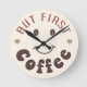 Elevem suas manhãs com o "Mas primeiro, Relógio de Café", uma encantadora e funcional adição ao espaço de qualquer amante de café. Com um design elegante e um mantra motivacional, este relógio é perfeito para cozinhas, cafés, escritórios ou cafés. Comece seu dia certo, acompanhando o tempo em estilo — porque o café sempre vem primeiro!