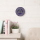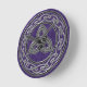 Um fundo roxo brilhante e escuro com uma Roda Celta e Trinidade prateada metálica faz um relógio que é decorativo e tem significado diferente do tempo atual.