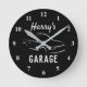 Presente de relógio de carro preto e branco. design de automóvel Legal com nome personalizado e cor de fundo. Ideia de presente de Natal ou Aniversário para marido, pai, namorado, avô, chefe, colega de trabalho, motorista de táxi, motorista de corrida, garoto, crianças etc. Tempo de decoração da casa de tendências para mecânico, compro de reparo de carros, garagem, caverna de homem etc. Carregue o logotipo ou imagem de sua própria empresa opcionalmente.