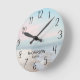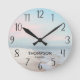 Relógio redondo azul-rosa-rosa de praia colorida personalizado. O presente perfeito para um amante de praia. Excelente para uma casa de praia ou uma casa de praia temerária. Adicione o nome da família para um toque pessoal. Faz um presente incrível.