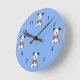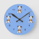 Desenho do doutor. Caricatura de um cão de brinquedo com corpo castanho e orelhas, fezes brancas e barriga. A imagem fica em 12, 3, 6 e 9 posições. Fundo em azul médio.