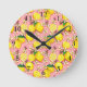 Relógio Rosa De Limão. Este relógio apresenta um padrão alegre de limões, flores brancas e folhas verdes colocadas sobre um fundo cor-de-rosa macio—trazendo a vibração da limonada cor-de-rosa para qualquer quarto!