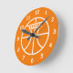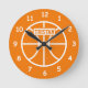 Relógio de basquetebol infantil para quarto ou berçário infantil. Design de esporte bonito para jogadores de basquete, treinadores, treinadores, etc. Personalize com o nome ou monograma da criança. Cor de fundo personalizada, isto é, laranja. A sala de tendências decora ideias. Os presentes de Festa de aniversário do tema desportivo. .