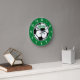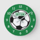Relógio de bola de futebol para o quarto ou berçário de crianças. design de esportes bonitos para jogadores de futebol. Personalize com o nome ou monograma da criança. A cor de fundo personalizada é verde. A sala de tendências decora ideias. Os presentes de Festa de aniversário.