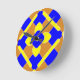 Decorre sua parede com este relógio azul, amarelo e laranja. Fique de olho para fazer a correspondência entre arte na parede, travesseiros e outros itens de decoração.