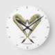 Este relógio de parede apresenta dois saxofones ouros, invertidos e voltados um para o outro para formar uma forma cardíaca como presente musical para comemorar um casal juntos. Na base do coração, em qualquer dos lados das peças bucônicas estão os espaços reservados para nomes ou iniciais de casais novos ou românticos. Abaixo das iniciais na face do relógio está um marcador para uma data significativa - data do noivado, data do casamento, aniversário. O relógio é personalizável. Use a opção Escolher seu estilo para escolher o tamanho (médio ou grande) e a forma (redondo ou quadrado). Use o botão Personalizar para personalizar totalmente o design. Ver e comprar este produto em lojas internacionais - Clique no painel abaixo