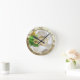 Festa chica vibrante, romântica e caprichosa de folhagem verde brilhante com uma vibração de primaveras de palma com seda branca brincalhada e 2 alianças de casamento relógio de parede como um momento de casamento