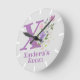 Relógio De Quarto De Crianças. Design apresenta Monograma & Nome com Flores em ambos os lados no estilo pastel de cor de água. O nome de exemplo é Xavie. Altere o nome conforme desejado para qualquer pessoa com um nome que comece com X.