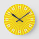 Um relógio alegre num simples padrão de "sol rebentado" de amarelo brilhante e escuro.
