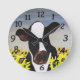 Relógio da parede do campo de vacas e girassóis. Decoração de vaca, campo de girassóis.