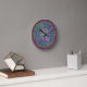 Adicione um elemento colorido a qualquer quarto na sua casa com este relógio fractal em tom de joia. Este relógio sem número apresenta um desenho circular de fractal abstrato em cores moles do arco-íris. Círculos menores se espalham pelo padrão principal para agregar profundidade e interesse visual. Este relógio fará um presente único para aqueles que gostam de designs abstratos.
