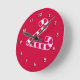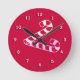 A face do relógio é vermelha com algarismos brancos tridimensionais. No centro há uma cana doce listrada branca com sombra rosa. ***Parte de um conjunto coordenado - BKM1a.