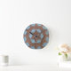 O padrão castanho e azul de "castelo" enfeita este rosto do relógio. Os pontos da "parede" marcam as posições do número 1-12 no relógio.