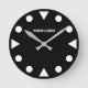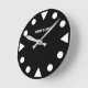 É fácil ler um pequeno relógio de parede com uma face de discagem simples. Relógio moderno preto e branco sem números com nome, aspas, logotipo ou monograma personalizados. Design de discagem de relógio de plástico moderno com grandes índices de pontos para indicar a hora. Cara de quartzo minimalista com impressão branco. Adiciona opcionalmente a sua própria cor ou imagem de fundo. Simples modelo de texto minimalista. Decoração de parede contemporânea para casa, escritório, cozinha, sala de estar, banheiro, berçário de criança, ginásio, sala de negócios, quarto de criança, hall, bar, café, restaurante, clínica dentária, hospital, hotel de luxo, salão, escola, local de trabalho, dormitório, casa de clube esportivo, piscina de natação e outros lugares. Disponível em tamanho menor e forma quadrada. Um mergulhador de tempo mínimo claro inspirou uma face adequada para idosos e deficientes visuais. Faça seu próprio eterno olhar relógio com a ajuda deste modelo fácil. Ideias únicas para casamento, aniversário, nova casa, aposentadoria e muito mais. Cinza ou cor preta da mão.