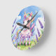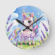Redondo Relógio Unicórnio Campo de Lavanda Nome Editável