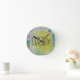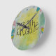 Um relógio colorido de parede com a palavra "Breathe" no centro. trabalho de arte de mídia mista como fundo.