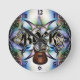 Fundo fractal metálico multicolorido com metal preto e ouro ROCK e um violão. Um relógio divertido para músicos.