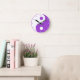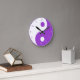 Redondo Símbolo Yin Yang Purple e White Relógio