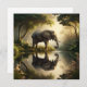 Cartão elefante. Uma bonito ilustração serena de um elefante que se encontra na floresta refletindo na água. Uma peça de arte tranquila para te ajudar a relaxar.