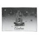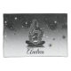 Uma silhueta encantadora de uma mulher berrando uma bola de cristal brilhante, simbolizando maravilha e introspecção. O pano de fundo apresenta um luxuoso boque preto-e-ouro com luzes suaves e cintilantes celestes, evocando uma atmosfera sonhadora.
