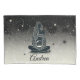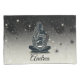 Uma silhueta encantadora de uma mulher berrando uma bola de cristal brilhante, simbolizando maravilha e introspecção. O pano de fundo apresenta um luxuoso boque preto-e-ouro com luzes suaves e cintilantes celestes, evocando uma atmosfera sonhadora.
