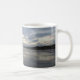 Reflexões cintilando da água do sol que ajusta-se sobre uma praia em Swansea.