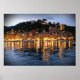Junte-se um toque dessas noites românticas em Portofino, Itália, com esta foto dos lanternos do café refletindo sobre as ondulações da clássica aldeia portuária.