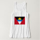 Esta design apresenta a bandeira nacional de Antígua e Barbuda, que é um Estado soberano insular nas Índias Ocidentais nas Américas, que se situa entre o Mar Caribe e o Oceano Atlântico. É constituída por duas grandes ilhas, Antígua e Barbuda, e por um conjunto de ilhas menores (incluindo Excelente Bird, Green, Guiana, Long, Maiden, Prickly Pear, ilhas York e, mais adiante, a ilha de Redonda). A capital e maior porto e cidade são Ruas. John's em Antígua, enquanto Codrington é a maior cidade em Barbuda.