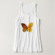 Borboleta de monarca laranja com asa decorada com papoila amarela e vibrante da Califórnia em fundo branco.