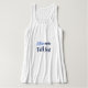 "Escute mais. Fale menos". Este topo do tanque tem uma citação atenciosa em azul e marinho escrita, baseada em um velho ditado russo. Estas são palavras para viver, um pouco de compaixão antiquada para nos ajudar num mundo moderno.