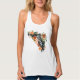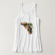 Prepare seu estado natal ou lugar de férias favorito com este lindo tanque da Flórida, com um mapa da silhueta do estado adornada com flores tropicais coloridas, folhagem verde e laranjas suculentas. O nome do estado é inscrito dentro no script com letra manual.
