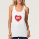 Este topo contém um coração vermelho vibrante contendo as letras maiúsculas ct, em negrito, branco e arredondado, uma abreviação lúdica para Connecticut, o estado de constituição.