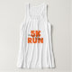 5K Correr T-shirts, canecas, bolsas, adesivos, correntes-chave, capuzes, tampas de tanques e outros presentes com texto laranja que lê "5K RUN" e texto preto que lê "Resistência à Determinação". Esses itens motivacionais de roupa e presentes são excelentes, seja treinamento para um 5K, já executou um 5K, ou vários 5Ks!