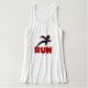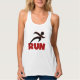 Tirando T-shirts, canecas, bolsas, guardas, topos de tanques, capuzes, e outros roupa e presentes para corredores com um corredor de silhueta preto e texto vermelho que lê RUN. Esses itens de roupa RUN e presentes são excelente para qualquer um que esteja treinando para um 5K, qualquer um que apenas ame correr, ou alguém que já tenha realizado várias maratonas!