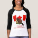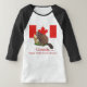 Brincadeira de palavras para esses presentes e roupa. Eles apresentam um castor sentado com a bandeira canadense ao fundo. O texto diz "Canadá.. Casa do Furry Beaver"