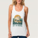 This retro-inspired surf art features a too-cool bulldog who rides an endless wave in front of the setting golden sun. "Get On Board" is written in teal vintage coastal font. Designed with old-school California energy, the distressed look gives it an authentic feel, like it was pulled straight from a vintage surf shop. Show off your love for the waves and dogs with this fun scoop neck tank top.