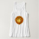 This striking sun-and-moon boho goddess artwork features a radiant golden winking face surrounded by fiery mandala rays. Symbolizing balance, intuition, and feminine strength, this piece represents harmony between day and night, mind and spirit. This feel good scoop neck tank top is perfect for anyone drawn to celestial symbolism and unique spiritual art. | Vivid printing is recommended for pink garments.