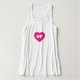 Esta camiseta de cima do tanque tem um coração rosa-quente vibrante contendo letras maiúsculas em negrito, arredondadas, brancas ou, uma versão lúdica da abreviação para Oregon, o estado do castor.