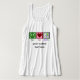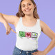 Sinal de paz, coração e miçangas roxas e verdes atrás de uma máscara de mardi gras. Tanque personalizado Mardi Gras no topo.