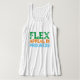 Um topo de tanque com o slogan motivador "Flex Appeal In Progress" em tipografia colorida de texto.