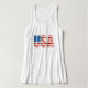 Tanque feminino mostrado na cor branca com um patriótico impressão de Bandeira dos EUA. Personalize este tanque ou comprar como está.