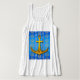Belo e Na moda Branco Racerback Topo com nosso Design de Âncora Azul Ceruliano - Moda Náutica Excelente para o Verão!