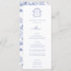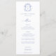 Monograma de Crest Azul de Regência Vintage, menu de casamento. Vintage inspirou a crista barroca com a coordenação da tipografia azul. Recursos, elegante padrão floral do Jardim Chinoiserie com apoio.