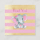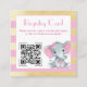 Cartão de registro de código QR de elefante menina rosa dourado com fundo de listras modernas. Ótimo adicional para o chá de bebê da menina.
