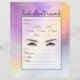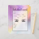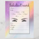 Este registro simples e glamouroso de cliente de lash é perfeito para qualquer salão de beleza moderno e/ou artista independente de pestanas. Ele apresenta um gradiente ombre esparso (roxo, cor-de-rosa, amarelo e azul) unicórnio impresso com tipografia cursiva escrita à mão preta, mapa das pestanas e um lugar para seu logotipo e informações comerciais. É elegante, giro, giro, bonito, chique, moda e legal. ***Entre em contato com o designer se precisar de qualquer alteração na folha.******NOTA IMPORTANTE do DESIGN: Para qualquer solicitação personalizada de design, como solicitações de correspondência de produtos, mudanças de cor, mudanças de posicionamento ou qualquer outra solicitação de alteração, clique no botão "mensagem" ou envie um e-mail ao designer diretamente em lafemme.art@gmail.com. Você pode até enviar um e-mail para ela solicitando um design completamente personalizado e novo.